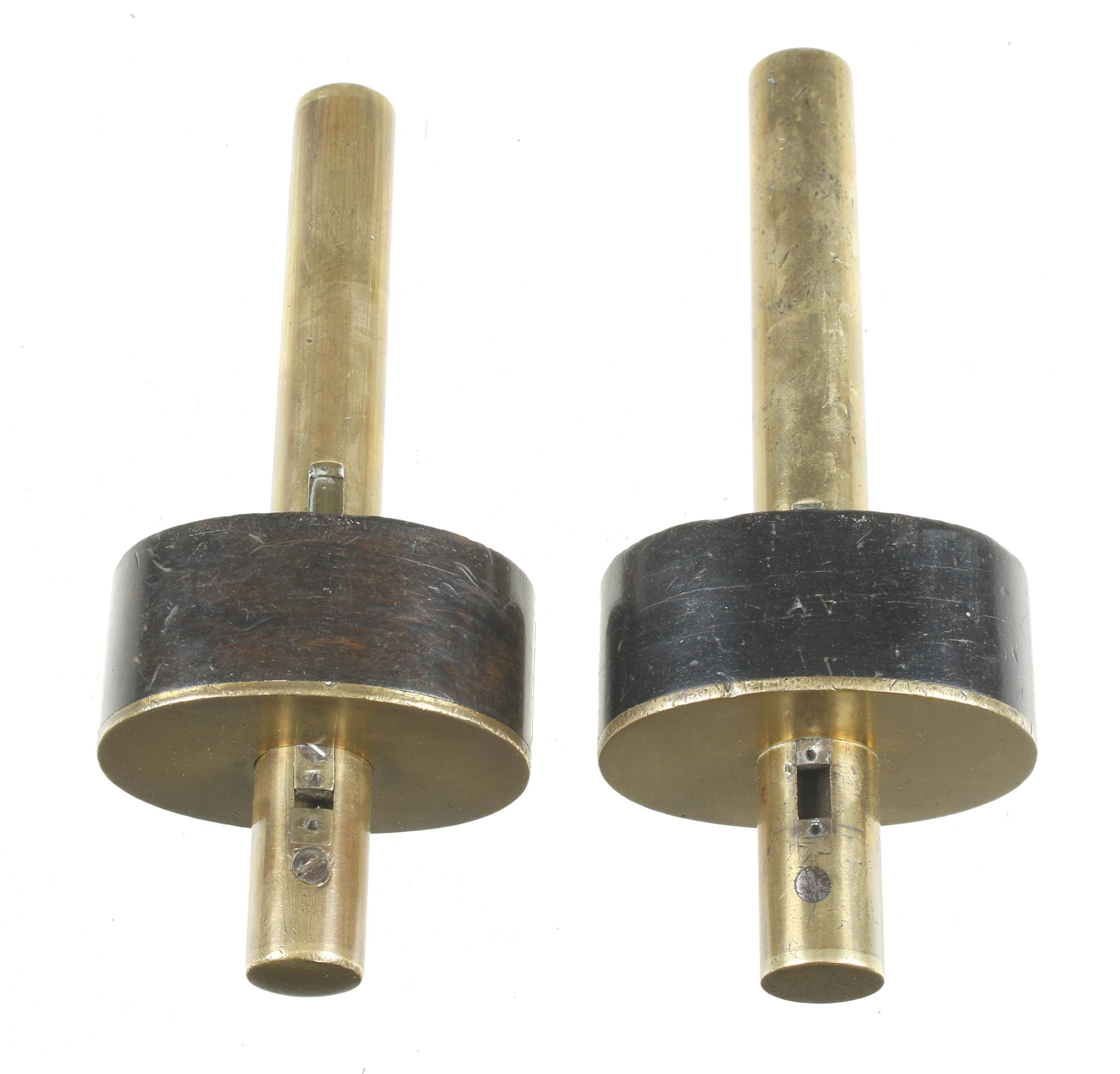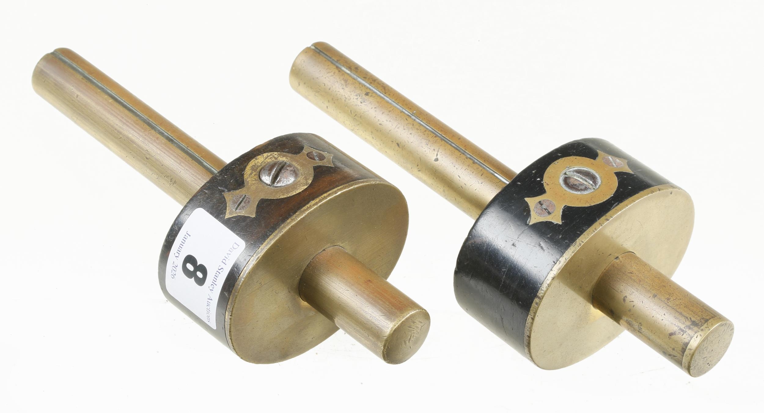 Two brass stemmed ebony mortice gauges G+