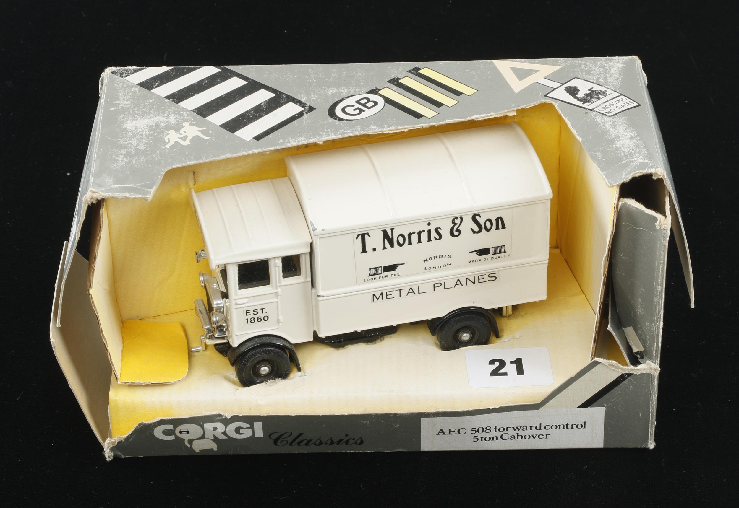A CORGI classic toy van with Norris decal in tatty box G+