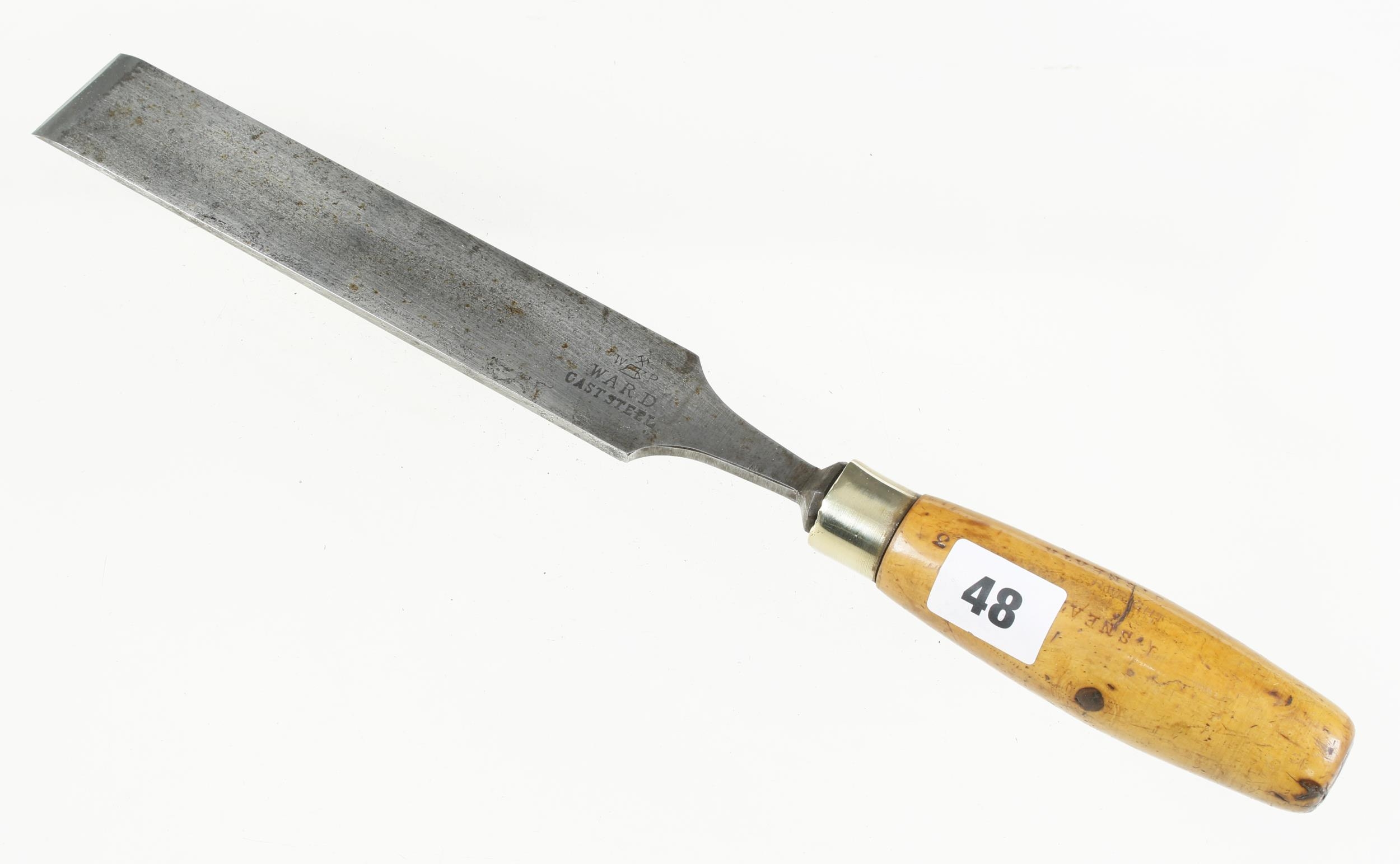 A 1 1/2" paring chisel by WARD with boxwood handle G+