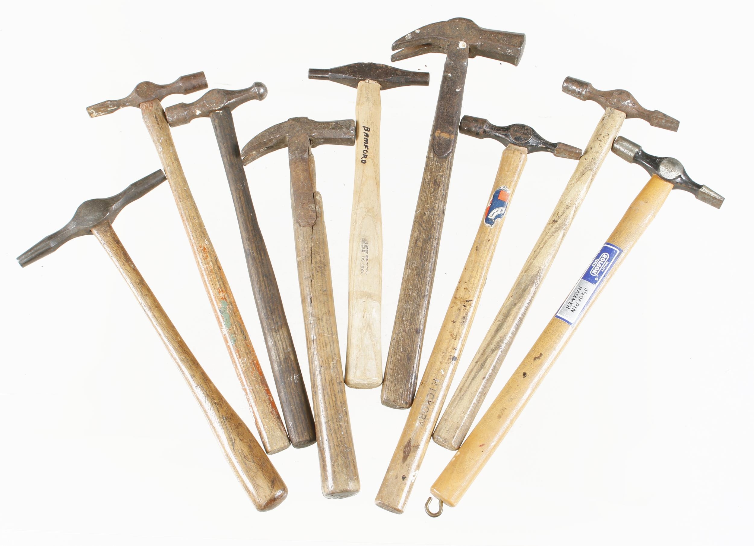 Seven pin hammers and two strapped hammers G