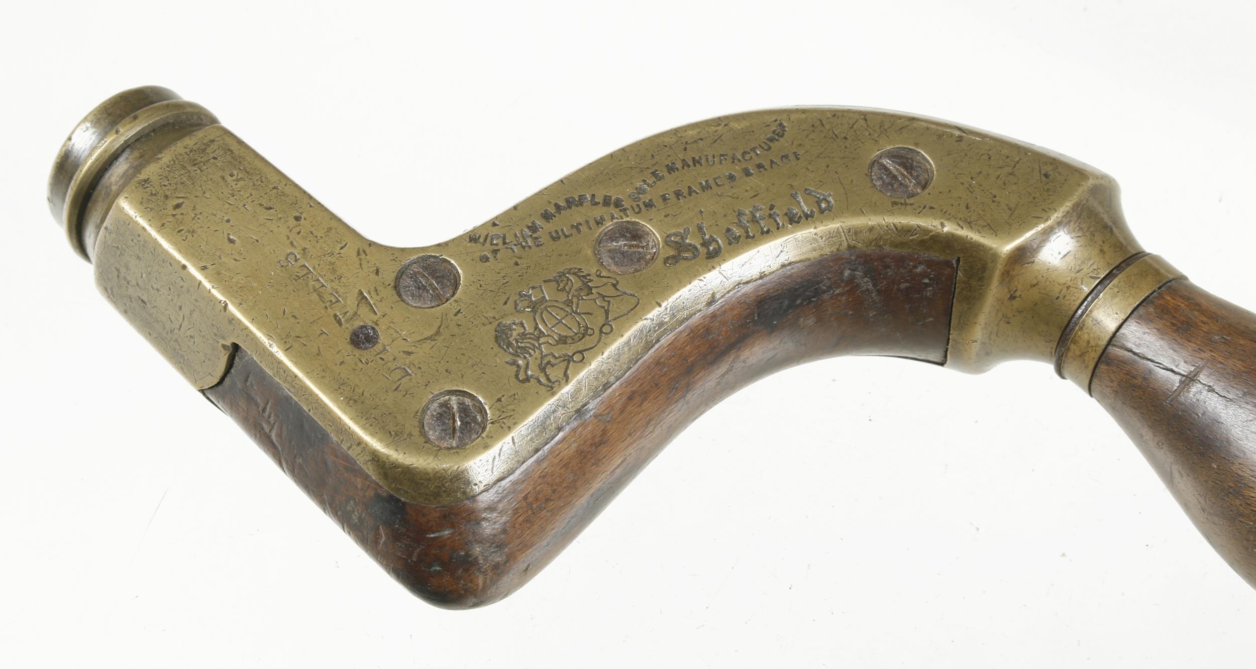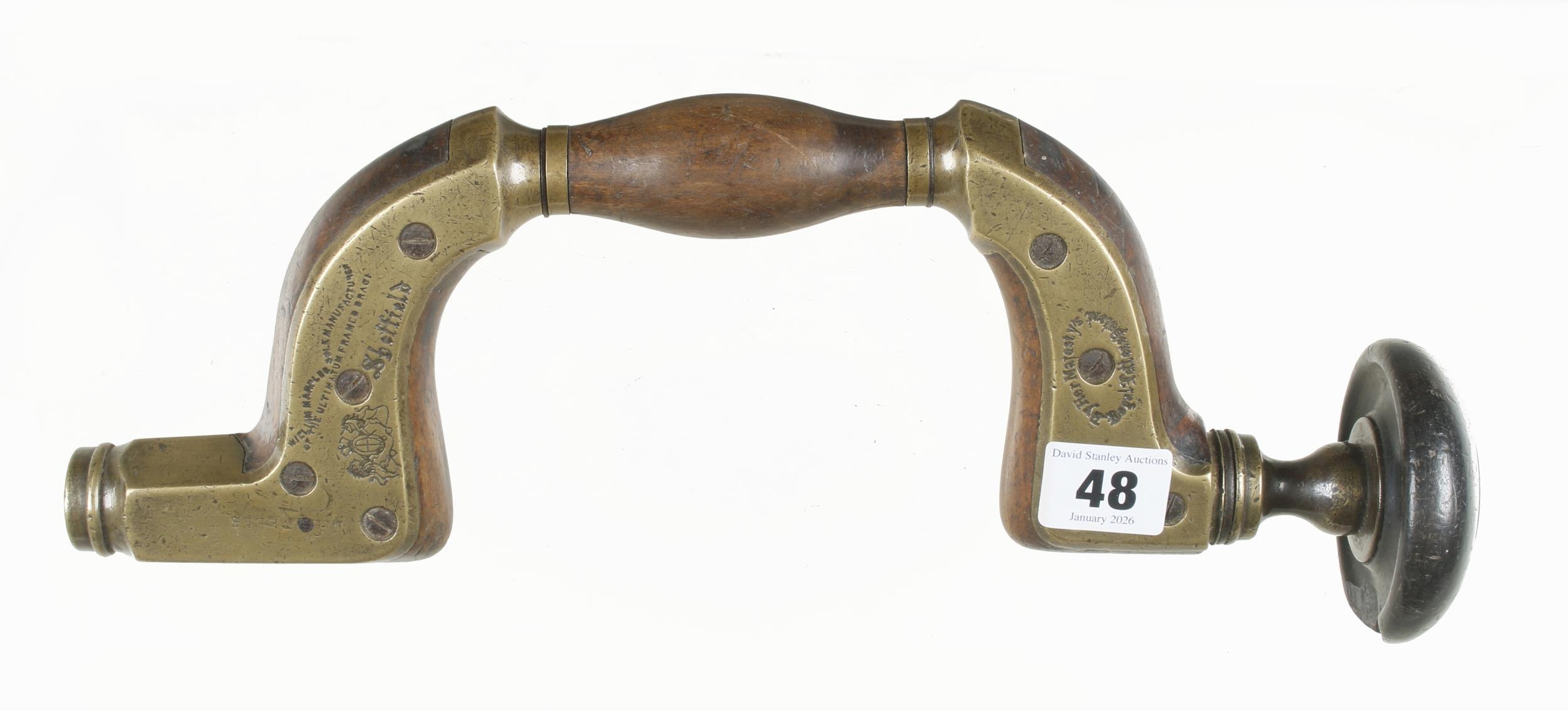 An Ultimatum brass framed beech brace by MARPLES with most orig ring in ebony head G+