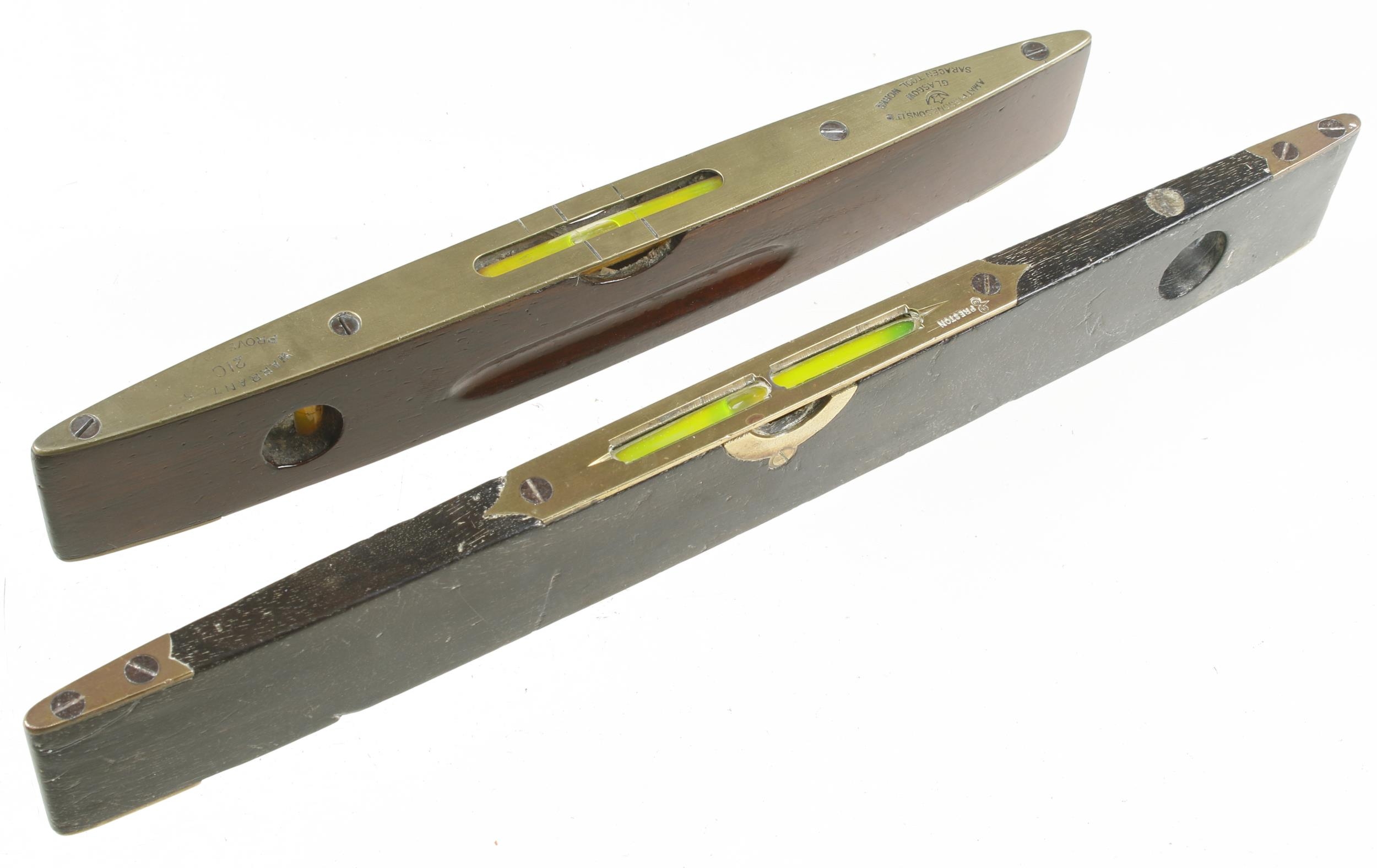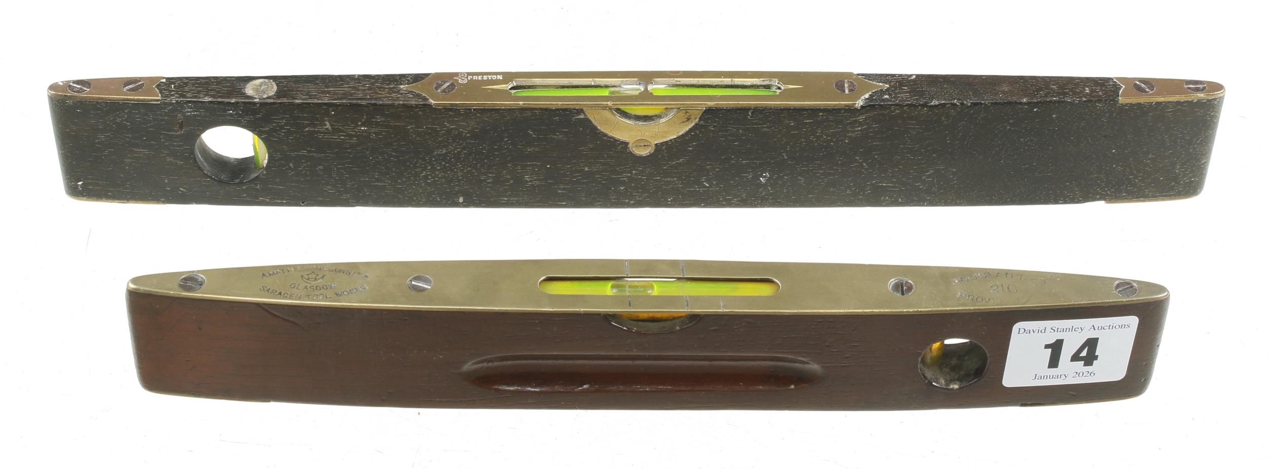 A MATHIESON No 21C rosewood and brass boat level and another by PRESTON G+
