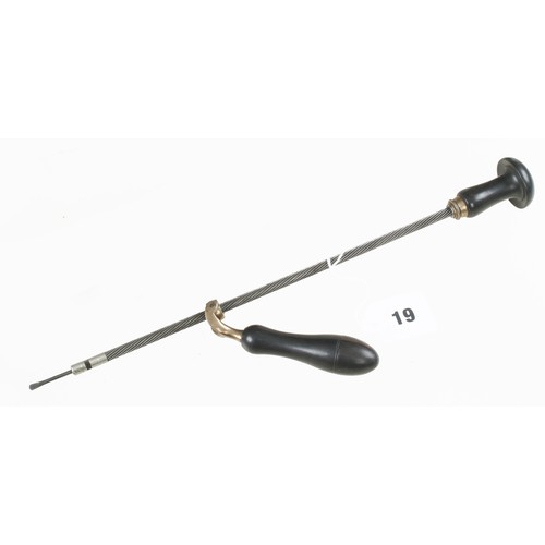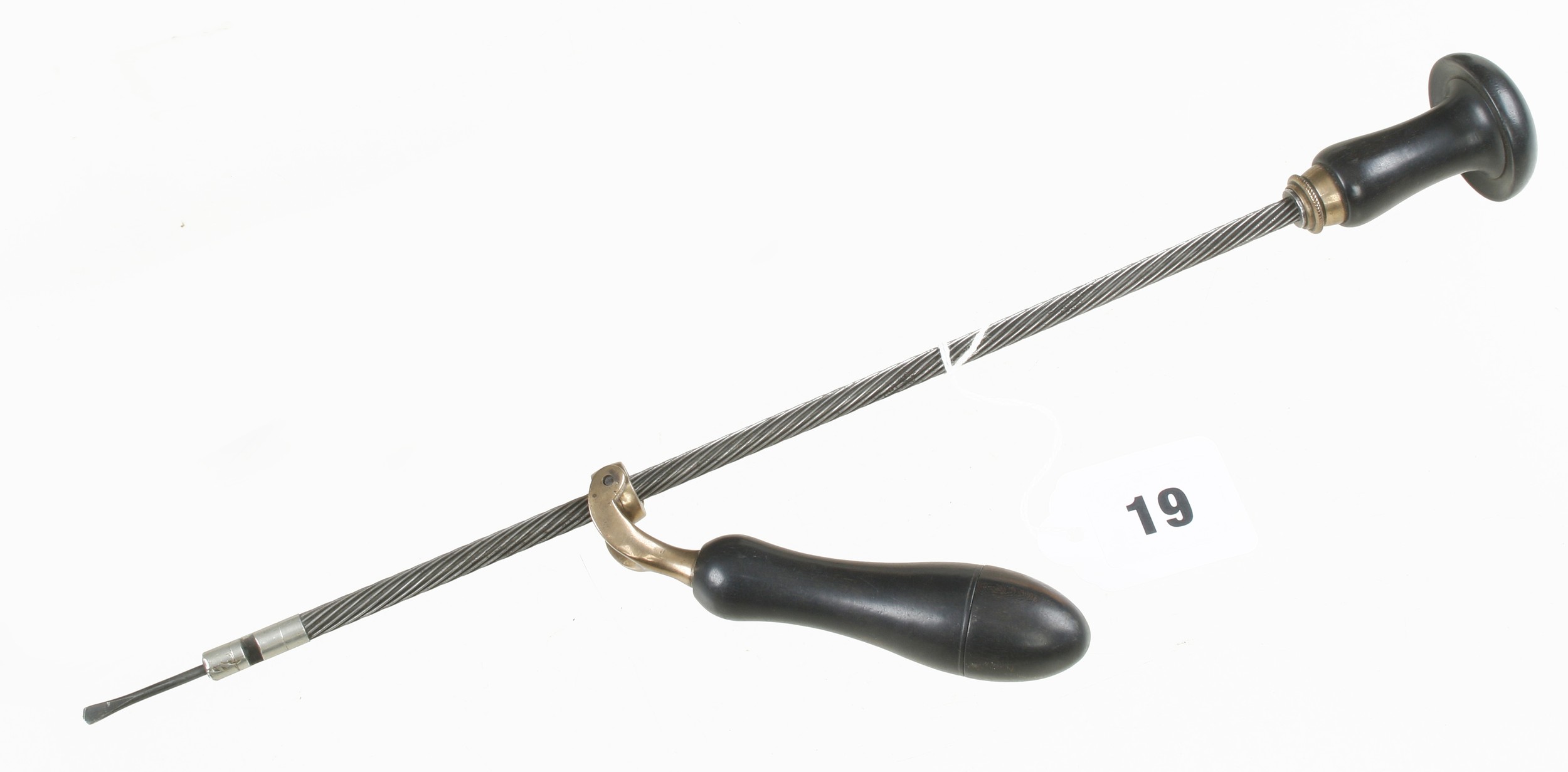A fine ebony and brass archimedian drill by FENN with side handle to hold bits G++