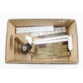 A brass stemmed ebony mortice gauge, 4 brass topped levels etc G